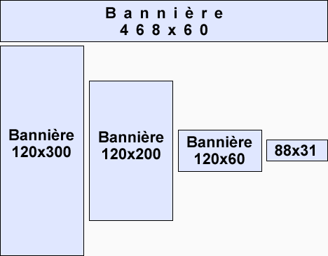 Nous acceptons différents formats de bannières allant de 88x31 pixels à 468x60 pixels.